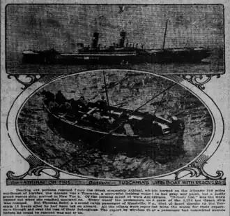 - ^ "Thrilling Tales of Rescue Told by Survivors of Burning Greek Liner". The Bridgeport Evening Farmer. Bridgeport, CT. 24 September 1915. p. 9. Retrieved 24 September 2015 – via Chronicling America.
