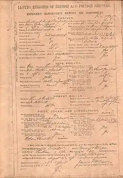 The steamer Bandırma, built 1878 in Paisley, Scotland, was a 47.7-metre (156 ft) cargo ship with 192 gross register tons capacity. It was christened Trocadero, and under this name, it sailed five years long as a freighter for Dansey and Robinson.[1] In 1883, it was purchased by Greek ship-owner H. Psicha Preaus, and renamed SS Kymi. 7 years later, it was sold to another Greek ship-owner, Cap. Andreadis, sailing under the same name. In 1891, it went down following an accident but could be floated again.