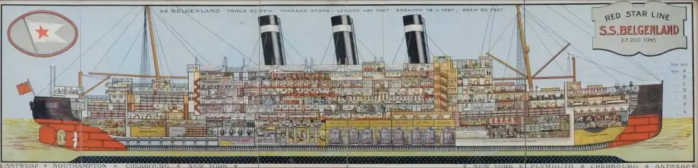 - "Detailed Deck Plans for SS Belgenland". Ingebonden scheepsplannen van de 'R.M.S. "Belgenland" Red Star Line'.