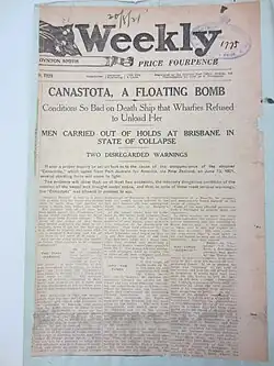 - ^ "Ill-fated Canastota". The Telegraph (Brisbane). Brisbane. 17 November 1921. p. 2. Retrieved 13 February 2018.