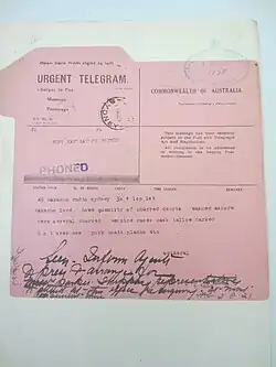 - ^ "STILL NO NEWS". Daily Telegraph. Sydney. 25 June 1921. p. 12. Retrieved 13 February 2018.