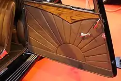 "This car has its little knot of admirers around it every minute of the day, and from the point of view of general interest it is the most serious rival to the Rover Scarab. It is made by the Swallow Coachbuilding people on a chassis specially built for them by Standard, and featuring a six-cylinder side-valve engine of 15hp. But it is the body that is the big attraction. Its long low lines with no running boards and the head only a matter of four feet above the ground create an impression of speed and gracefulness which is quite worthy of comparison with the Lagondas and Delages. It is with a distinct shock that one notices the price is only £310. The radiator is quite different from the ordinary Standard type being specially designed to conform with the body lines and fitted with a chromium plated fluted front. It is set off with a futuristic emblem and the filler cap is tucked out of sight under the bonnet. The Rudge-Whitworth wire wheels are racing type, the wheel base being 9 ft 4 in and the track 4 ft 1 in. The coachbuilt body has a sliding roof of new design with leather-grained head and large travelling trunk at the rear. The cycle type wings are deeply domed the side valances being very deep so that the necessity for running boards is obviated. The interior of the car is beautifully finished, the cabinet work being done in very atrractive highly polished sycamore grained to resemble the back of a fiddle. The upholstery is in furniture hide. The particular model shown is finished in apple green and black and is a beauty in every sense of the term."[2]