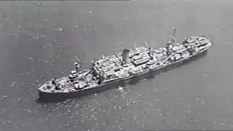 On 14 July 1943 WSA placed Contessa under sub bareboat charter to the United States War Department for operation by the United States Army Transportation Corps.[6] By 18 September 1943 Contessa had joined the Army's Southwest Pacific Area local fleet under the local fleet number X-96.[7] Her sister ship, Cefalu, also joined that fleet on the same date as X-95 with both now being classed as 14.6 knot ships, converted in theater for troop transport and were serving as "leave ships" used to transport troops for rest in Australia from the New Guinea fronts.[18] The Australian War Memorial photo of the ship in the Southwest Pacific notes armament with a five-inch gun and 20 mm antiaircraft guns at bow, on superstructure and aft.[19]