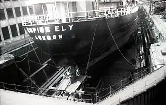 ![]() The ship, as Empire Ely, in dry dock