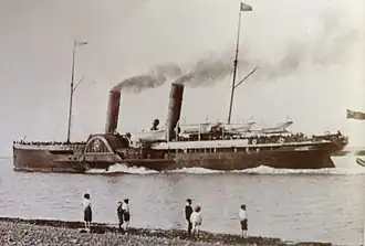 Mona's Isle was said to be the largest, best appointed, and most expensive steamer in the company's history up to that time.[2] Exceptionally fast in her day, she could reach Liverpool from Douglas in only 3hr. 55min. She was the first of five rather similar paddle-steamers added to the fleet between 1882 and 1889.