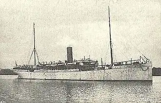 Originally named SS Singapore, she was 430 feet long and 49 feet 4 inches in beam, with a three-cylinder triple expansion steam engine and a top speed of 14.5 knots.[1] She had a capacity of 90 first-class and 62 second-class passengers and also carried cargo.