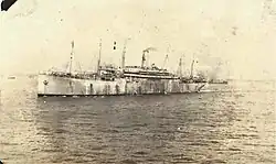 After the United States declared war on Germany on 6 April 1917, Rhein, along with all other German ships interned in American ports, was seized by U.S. authorities. Initially handed over to the United States Shipping Board (USSB), she was later transferred to the U.S. Navy to effect repairs caused by neglect and sabotage by her German crew. The ship was overhauled, reconditioned, fitted out as a transport, and commissioned as USS Susquehanna at Norfolk, Virginia, on 5 September 1917. USS Susquehanna sailed from New York on her first voyage with troops on 14 December 1917, under the command of Captain Zachariah H. Madison with Commander Allen B. Reed, executive officer. Subsequently, Commander Reed relieved Captain Madison of command on 22 August 1918.[2] Both commanding officers were awarded the Navy Cross in 1920 for the hazardous duty of commanding the troop ship through waters that were mined and patrolled by German U-boats.[3] [4]