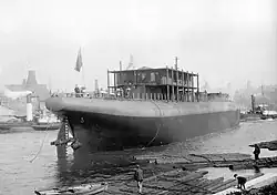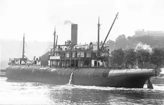 In 1891 the whaleback Charles W. Wetmore visited Liverpool, arousing interest among shipowners.[1] William and Edmund Johnston, proprietors of William Johnston & Co of Liverpool, ordered Sagamore from Doxford's in Pallion, Sunderland. According to some sources, The Scottish-American shipmaster Alexander Dougall licensed her building.[2]