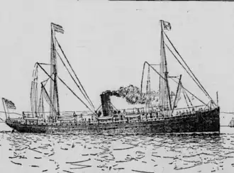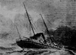 In April 1905, San Juan was caught in a storm, which nearly capsized her. The storm damaged all her machinery, including her engine. Due to this, San Juan, now 24 years old, arrived late to San Francisco, California. At this point in her career, San Juan was known for being unreliably slow.[3] In June 1905, San Juan carried 58 Russian immigrants from Panama to California, where they joined a Slavic community in Los Angeles, California. The immigrants came from Batum. One Russian girl on San Juan was supposedly suffering from trachoma, which threatened to have her deported when the steamer reached its American dock.[4]