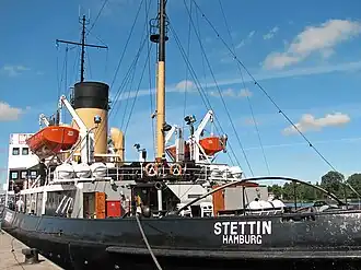 Stettin is a steam icebreaker built by the shipyard Stettiner Oderwerke in 1933. She was ordered by the Chamber of Commerce of Stettin (until 1945 Germany, since 1945 Szczecin, Poland). The economy of the city of Stettin strongly depended on the free access of ships to and from the Baltic Sea. Therefore, icebreakers were used to keep the shipping channels free from ice during the winter.