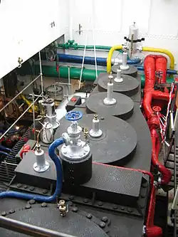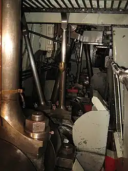 | Propulsion | Triple expansion compound steam engine with Stephenson valve gear powered by 2 hard coal boilers consuming 600 - 1000 kg/h, capacity 5800 kg/h steam each at 14,5 bar and 196 °C |
