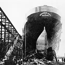 The Superior City was launched on 13 April 1898 at the yards of the Cleveland Ship Building Company (later named the American Ship Building Company) in Lorain, Ohio.[1] Superior City was a pioneer vessel representing the steady progression of bigger, longer, and stronger craft from the days of ships powered by sails.[2] At her launching, she was the largest vessel ever built on freshwater. The whole town of Lorain crowded the river front to watch her launch.[1]
