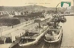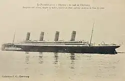 At the start of the 20th century, the port of Cherbourg, France, was on the verge of becoming an essential stopover for most of the British and German ocean liners traveling between Europe and the United States. In 1907, White Star Line established a regular stop there on its newly created route between Southampton, United Kingdom and New York, United States. From 1909, the Cherbourg stopover took on a new dimension and a ferry terminal (which was not completed until 1912) was built to accommodate passengers arriving by special trains from Gare Saint-Lazare in Paris.[1] Despite major work, however, the port posed a major problem: large liners could not dock there because of shallow water. Boarding was therefore done by means of tenders coming to meet them with passengers and luggage.[2]