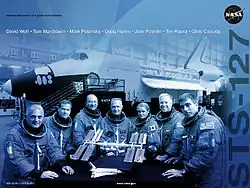 ![]() From left to right: Wolf, Cassidy, Hurley, Payette, Polansky, Marshburn, and Kopra | |