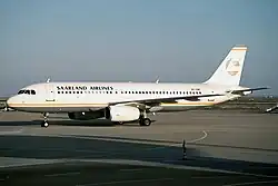 Saarland Airlines was founded in 1992 by German entrepreneur Josef Tabellion to take over Turkish charter airline Nobel Air's German routes. Operations began on April 4, 1992 between Düsseldorf and Dalaman with a Boeing 737-300 leased from Maersk Air.[1] In October of the same year the airline leased another Boeing 737 except this aircraft was painted in the airlines livery.[2] In December 1992 the airline took over operations from Hamburg Airlines, in return the owner of Hamburg Airlines, Eugene Block received a 20 percent stake in Saarland Airlines.[3] In Spring of 1993, Saarland Airlines expanded its fleet and leased two Airbus A320-200s.