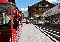 Saas-Fee can be reached by car or bus – postal buses run during much of the day half-hourly from Brig and Visp, though none provides a service beyond the bus terminal through the length of the town during the winter. No cars are allowed to enter the city (they have to be parked in special car parks outside); only small electric vehicles operate on the streets between the hotels and ski area. The decision to exclude most motor vehicles was made by the village at the time of the construction of the road from Saas Grund in 1951 in order to eliminate air pollution.[3]