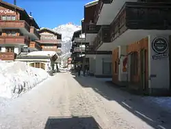 Saas-Fee (German: [zaːsˈfeː]) is the main village in the Saastal, or the Saas Valley, and is a municipality in the district of Visp in the canton of Valais in Switzerland. The village is situated on a high mountain plateau at 1,800 meters (5,900 feet), surrounded by a total of 13 peaks above 4,000 meters (13,123 feet) which is the highest concentration in the Alps, giving the village the nickname the Pearl of the Alps. It is a classic ski resort characterised by well-preserved Swiss wood architecture and a car-free city centre. The villages in its neighbourhood are Saas-Almagell, Saas-Grund and Saas-Balen.