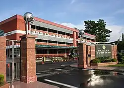 This five-story building was opened on 19 August 1984.[20] Originally, it provided a canteen on the ground floor, a lecture hall and a computer lab on the second floor,[20] but both of the facilities were soon moved to the Co-curriculum Activity Building and the Technology Building. It also provided a library but only on the second and third floor.[20] The fifth floor was used to provide accommodation for teachers for two years until a new teachers' hostel was opened in 1986.[20]