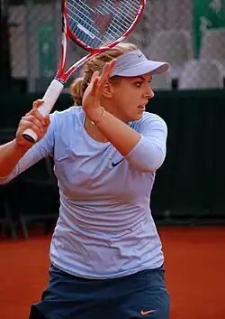 Lisicki's parents emigrated to West Germany from Poland in 1979; her father, Dr. Richard Lisicki, is of German and Polish descent and her mother, Elisabeth, of Polish. They came to Germany as "Aussiedler", descended from German citizens who lived in the former eastern territories of Germany which had become part of Poland after World War II.[3] In a 2009 interview with the German newspaper Die Welt, her father put emphasis on Lisicki being German: "Sabine is a German – not only because of her birth here [in Germany]."[4] Lisicki was born in Troisdorf, North Rhine-Westphalia, in 1989. Her father, who introduced her to the sport at the age of seven, has a doctorate in sport science and is her coach. Her mother is a painter specialising in ceramics.