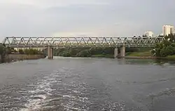 Saburovsky Rail Bridges (Russian: Cабуровские железнодорожные мосты) are two adjacent steel bridges that span Moskva River in southern Moskvorechye-Saburovo District of Moscow, Russia. They were completed in 1924 and 1953, when Saburovo was a remote suburb of Moscow.