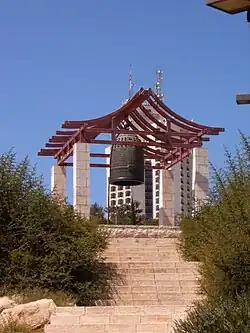 In April 1996, a Bonshō, a large Japanese bell, was installed in the park. It is engraved with inscriptions in Hebrew, Arabic, Japanese, and English, all containing the word “peace,” as well as an engraving of a verse from Psalms (Tehillim 122): "Pray for the peace of Jerusalem; serene will be those who love you."[3]