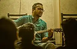 Sachin Warrier is an Indian playback singer and composer in the Malayalam film industry from Kerala. He became notable with the song "Muthuchippi Poloru" from the film Thattathin Marayathu. He made his debut with the movie Malarvaadi Arts Club.[2] He was working as a software engineer in Tata Consultancy Services in Kochi. Later he resigned from the job to concentrate more on music. His latest work is as a composer for the movie Aanandam.[3]