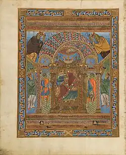 The Sacramentary of Henry II (German: Sakramentar Heinrichs II.), also called the Regensburg Sacramentary (Regensburger Sakramentar), is a manuscript of liturgical texts, which was created in Regensburg at the order of Emperor Henry II (r. 995-1024). It is among the most significant works of Ottonian illumination. The manuscript was gifted to Bamberg Cathedral by Henry II, was part of the Cathedral treasury until 1803 when it became part of the Bavarian State Library as a result of Secularisation. It remains there today, stored under the inventory number clm 4456. It is modelled on the Codex Aureus of St. Emmeram donated by Charles the Bald in 870.[1]