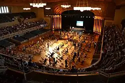 Music acts that have performed at the auditorium include Will Rogers (1927),[2] The Beach Boys (1963),[8]The Rolling Stones (1964, 1965 & 1966),[7] The Righteous Brothers (1965),[9] Ike & Tina Turner (1965),[9] Sonny & Cher (1965),[10] The Turtles (1967),[11] The 5th Dimension (1967),[12] Grateful Dead (1968),[13] Jefferson Airplane (1968),[14] The Doors (1968),[15] Chicago as Chicago Transit Authority[16] (1969),[17] Eric Burdon & War (1970),[18] Frank Zappa in (1971),[19] Cheech & Chong (1972),[20] Canned Heat (1972),[21] Doobie Brothers (1972),[22] The Eagles (1974),[23] Steppenwolf (1974),[23] Fleetwood Mac (1975),[23] Journey (band) (1977),[23] Sammy Hagar (1977),[24] Toto (1977),[23] Santana (1979),[23] America (1979),[23] Huey Lewis and the News (1979),[23] Go-Go's (1982),[25] Mötley Crüe (1983),[25] Ratt (1984),[25] Night Ranger (1984),[25] Metallica (1985),[25] Dishwalla (1997),[26] John Fogerty (1997), Primus (1997),[27] 311 (1997),[27] Jane's Addiction (1997),[27] Tool (1998), [27]Sacramento's Deftones (1998),[27] Sacramento's Cake (1999),[27] The Offspring (1999),[27] 98 Degrees (1999),[27] Lit (1999),[27] The Wallflowers (2000), System of a Down (2000), Linkin Park (2000), Incubus (2001), No Doubt (2002), Papa Roach (2002), Eve 6 (2003), Audioslave (2005), Avenged Sevenfold (2006), Pat Monahan (of Train) (2007), Stone Temple Pilots (2008), Atreyu (2009), Third Eye Blind (2015), Queens of the Stone Age (2018), Los Lobos (2019), Weird Al Yankovic (2019), and Bob Dylan (2022).[28]