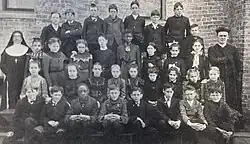 In 1909, the school had 85 students and a graduating eighth-grade class of nine. In 1917, the nuns' salary was $1.00 per school day. In 1918, during the Spanish Influenza, Fr Haarth noted "Something that never happened in the history of the Catholic Church in this State took place on the Sundays of the 7th and 14th of October [in 1918]: namely, the church was closed and no public services were held on account of influenza epidemic; the school was closed for three weeks at the same time."[4] A little over 100 years later, the school would once again be temporarily closed due to a pandemic.