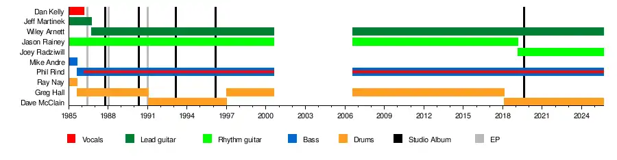 - Jason Rainey – rhythm guitar (1985–2000, 2006–2019, died 2020)