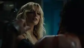 The music video for "Sacrifice" premiered on Rexha's official YouTube channel on March 5, 2021, with behind-the-scenes footage from the video published on March 16.[28][29] Directed by Christian Breslauer,[28] the two-minute and 49-second video incorporates a vampire-themed narrative with references to the American films Blade (1998) and The Matrix.[30][31][32] Rexha plays a bloodthirsty vampire leading a group of women as they navigate through a hospital rampage and indulge within a Blade-inspired club setting, marked by cascading blood from the roof.[6] The video narrative commences with a sequence depicting an injured and restrained man coupled with Rexha's authoritative presence as she approaches and delivers a performance in close proximity to the captive individual.[28][30] Then, it transitions to Rexha guiding the group through a hospital corridor, orchestrating a sequence involving the incapacitation of hospital staff, the assumption of control over the facility and the securing of access to a laboratory for the consumption of blood.[28] The video culminates in a nightclub setting filled with partying people with a display of floating blood from above.[28][33] Leticia Romero from Radiotelevisión Española (RTVE) highlighted the video's aesthetic and its evocation of a domina-styled artist accompanied by a group of vampiric women, collectively portraying a narrative of a blood-stained mission involving the act of "sacrificing a man".[34]