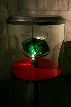 In 2017, the "emerald vase" was returned to the city in its transparent color,[1] after the restoration carried out by the Opificio delle Pietre Dure in Florence.[2] According to L. Ciatti, protagonist of the restoration attributed to Daniele Angellotto.[1] In 1800, the hypothesis was advanced for the first time that it was not obtained from a huge natural emerald, but that it was a simple green glass vase, a matter with no economic value.[3]