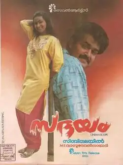 Sadayam (transl. 'Mercifully') is a 1992 Indian Malayalam-language psychological drama written by M. T. Vasudevan Nair and directed by Sibi Malayil. It stars Mohanlal, Thilakan, Nedumudi Venu, Murali, Sreenivasan, Maathu, K. P. A. C. Lalitha, and T. G. Ravi. The film was produced and distributed by G. P. Vijayakumar of Seven Arts Films. The film score was composed by Johnson.