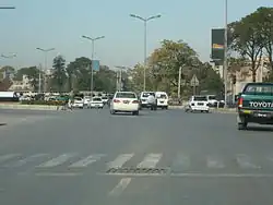 It is the first parallel road to the Mall Road and is well known for banks, photocopier shops and handicraft outlets. Its old name is Lawrence Road and connects Murree Road with Mahfooz Road which leads to the city Railway station. This road is the main thoroughfare for all of the city's transportation, which connect the rest of the city as well as Islamabad.