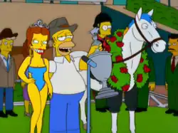 ![]() Homer collects a trophy after "Furious D" wins the Springfield Derby. | |