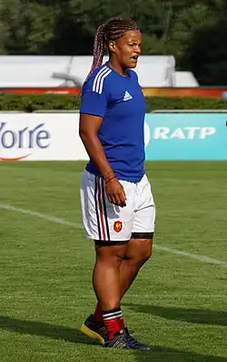 Safi N'Diaye (born 16 June 1988) is a French female rugby union player. In the domestic sport, she has won six trophies in the French top flight with Montpellier since making the switch from Castres in 2011. She made her debut for the France team in 2012.[1] She represented France at the 2014 Women's Rugby World Cup[2] and was named to the Dream Team.[3] She was also a member of the squad that won their fourth Six Nations title in 2014.[4]