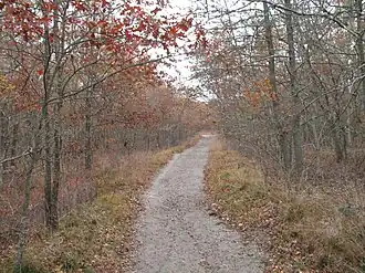 The Manorville Branch was abandoned on December 27, 1949. In the 1950s, Suffolk County Department of Public Works planned to transform the former branch into a four-lane highway called Suffolk County Road 91 (Manorville Branch Road), but this proposal was abandoned on June 24, 1986,[5][8] and as with the Long Pond Greenbelt, this road bed is also now a hiking trail.