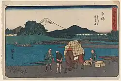 The Sagami River drains Lake Yamanaka, the largest and easternmost of the Fuji Five Lakes in Yamanashi Prefecture.[1] It loops northwest, then northeast through Yamanashi, before following a generally southerly course to exit into Sagami Bay of the Pacific Ocean between the cities of Hiratsuka and Chigasaki.[1] It is dammed at several locations along the way, forming a number of reservoir lakes, the largest of which are Lake Sagami and Lake Tsukui.