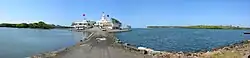 Sagar Shiv Mandir is a Hindu temple sitting on the island of Goyave de Chine, Poste de Flacq, Mauritius. Sagar Shiv Mandir is on the eastern part of Mauritius. It is a place of worship for Hindus settled in Mauritius and it is also visited by tourists.[1] The temple was constructed in 2007 by Vikash Gunowa who donated millions of Pounds in its development. It is one of the Top 3 Hindu temples to see on the island. It is surrounded by the lagoon and the mangroves that give to the place a mystical aspect. It hosts a 108 feet height bronze coloured statue of Shiva.