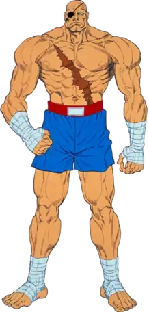 Sagat (Japanese: サガット, Hepburn: Sagatto) is a character from the Street Fighter video game series made by Capcom. He first appeared in the original Street Fighter (1987) as the final boss. He is shown as a tall Muay Thai fighter from Thailand, characterized by his eye patch and a large scar on his chest. Sagat became a playable character in later games and appeared in multiple Street Fighter titles in addition to comics, animations, and movies based on the series.