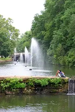 Siloam Springs has recently undertaken restoration efforts on Sager Creek. Phase one improvements were approved by the Arkansas Department of Environmental Quality (ADEQ) in 2008 and included removing a dam and installing boulder revetments, step pools and riffles along the creek.[7] Phase two sought to address algae that grew in the creek during the summer, causing aesthetic and odor issues. It also tried to restore original hydrology, geomorphology and water quality. Jointly funded by the Environmental Protection Agency, the Arkansas Natural Resource Commission and the City of Siloam Springs, the project included channel redesign, stream bank stabilization and planting riparian buffers.[8] Boulder steps and sloped vegetated buffers have allowed public access to the creek, which was not possible with the previous stream configuration.