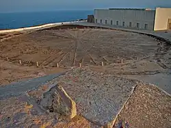 The 16th century bulwark-like fortress was severely damaged during the Great Earthquake of 1755. It was restored in the mid 20th century, but there is still a 16th-century turret present. After passing through the thick tunnel entrance, one sees a giant pebble compass rose (rosa dos ventos) of 43 m diameter. Normally compass roses are divided into 32 segments, but strangely this one has 40 segments (probably an error of the 20th-century restorers). It is unlikely to date back to the time of Henry the Navigator.