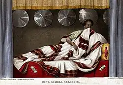 Sahle Selassie (Amharic: ሣህለ ሥላሴ, 1795 – 22 October 1847) was the King of Shewa from 1813 to 1847. An important Amhara noble of Ethiopia, he was a younger son of Wossen Seged. Sahle Selassie was the father of numerous sons, among them Haile Melekot, Haile Mikael, Seyfe Sahle Selassie, Amarkegne and Darge Sahle Selassie; his daughters included Tenagnework, Ayahilush, Wossenyelesh, Birkinesh, and Tinfelesh. He was the great-grandfather of Haile Selassie, the last Emperor of Ethiopia.
