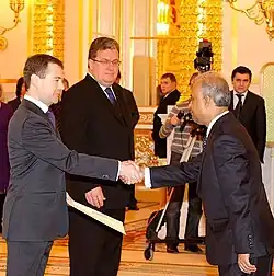 - ^ "Dmitry Medvedev received letters of credence from ambassadors of foreign countries and the European Union". Moscow: President of Russia. 16 December 2009. Retrieved 25 February 2010.