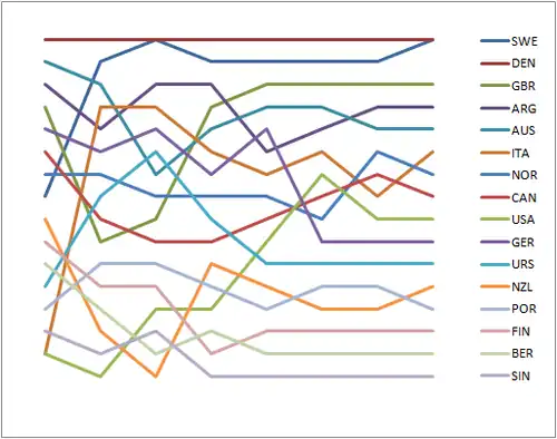 Helmsman (Country) | Crew | Yachtname | Race I | Race II | Race III | Race IV | Race V | Race VI | Race VII | Total Points [2] |