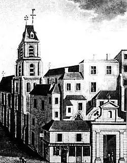Saint-Étienne-des-Grès was located on the Rue Saint-Jacques, on the site of the present Faculty of Law. It was one of the early centers of Christianity in Paris; it stood on a site said to be that of an oratory which was erected by St. Denis to St. Stephen.[1] Its foundation dates to around the sixth century.[2] Saint-Étienne was one of five Merovingian churches marking the road from Paris to Orleans.