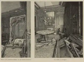 ![]() Photographical representation of the aftermath of the Saint Germain bombing in L'Illustration (19 March 1892)[1] | |