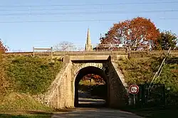 The municipality is crossed from East to West by the main rail axis of the southern Brittany. This line Savenay - Landerneau opened up to Lorient in 1862, it allows by Redon relations between the stations of the Brittany cities of the South and Paris by Rennes. The municipality has long disposed of a station and then a train stop, currently these two stations are closed and abandoned.[5] The railway history of the commune will may be rebound with freight activity.