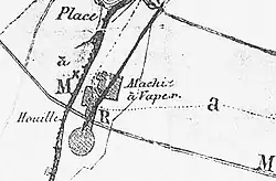 In 1819, the first ever steam engine was installed in a shaft at Ronchamp, capable of lifting 400 skips a day.[5] It was an English engine with a pendulum, condenser, low-pressure piston 0.45 meters in diameter and 10 bhp; it was manufactured in Mr. Rottewel's workshops in Boston. In addition to the extraction coil, this machine operated two sets of 0.19-meter-diameter pumps.[5] In October 1823, the Saint-Louis shaft cut through the first layer of the Stephanian coalfield at around 90 meters from the surface, with drilling stopped at 100 meters.[6] Reaching this depth for the first time in the Ronchamp coalfield, it was nicknamed the "great shaft".[6]