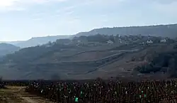 Saint-Romain wine is produced in the commune of Saint-Romain in Côte de Beaune of Burgundy. Rather than being situated on the main Côte d'Or escarpment, as most of the other Côte de Beaune wine villages, the vineyards of Saint-Romain are mainly located in a side valley to the west of Auxey-Duresses, in the direction of the communes and vineyards of the Hautes Côtes de Beaune. Most vineyards of Saint-Romain are located on slopes of various directions. The Appellation d'origine contrôlée (AOC) Saint-Romain may be used for red and white wine with respectively Pinot noir and Chardonnay as the main grape variety. A little more than half of the production consists of white wine. There are no Grand Cru and no Premier Cru vineyards within Saint-Romain.